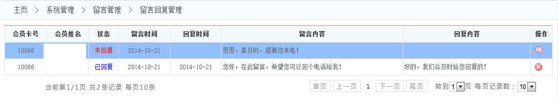 留言信息管理:指會員在會員自助系統(tǒng)里面給商家的留言。