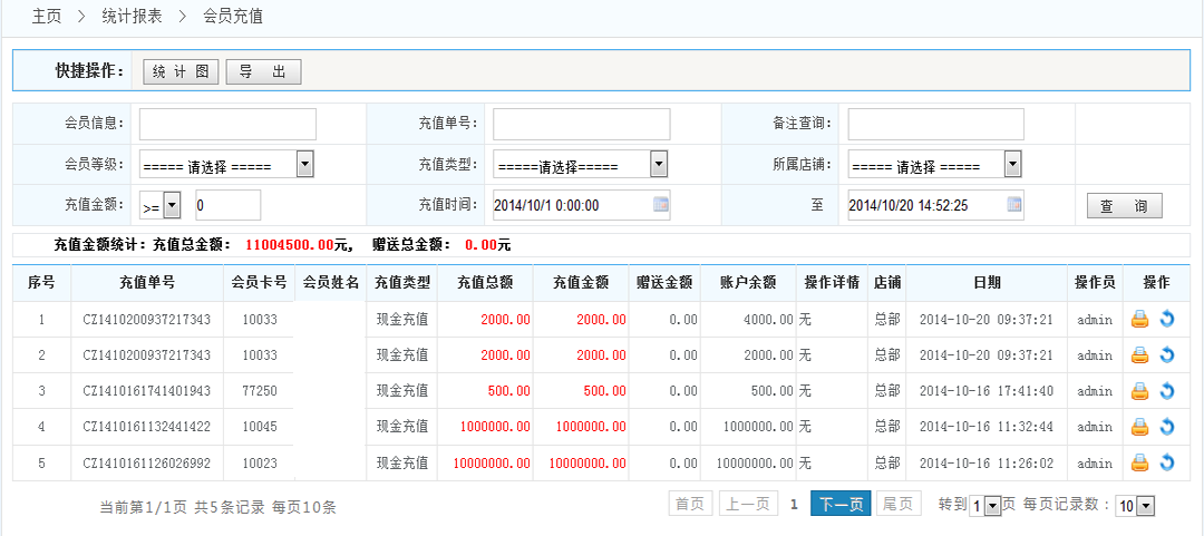 4.打印:將此條會(huì)員充值信息 打印出來