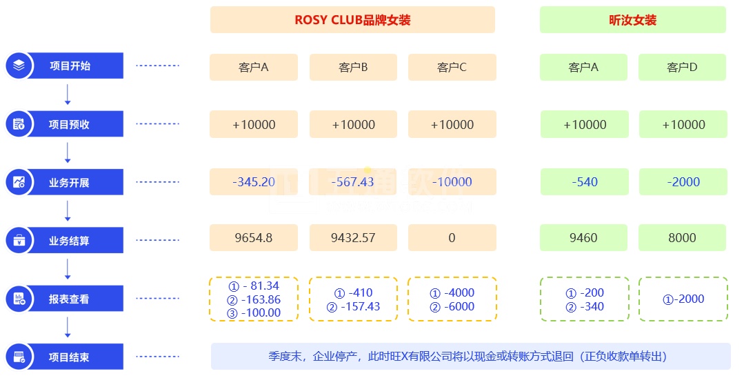 湖南旺X有限公司為貼牌生產(兩種不同品牌長裙):要求下游經銷商均要在季度末預交1w元,用于下季度拿貨;下季度末停產時,未用完的金額將退還